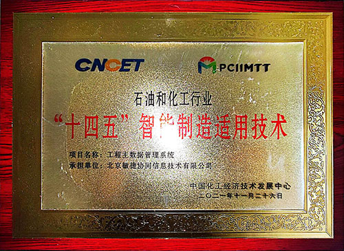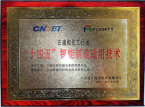 我公司產(chǎn)品獲得石油石化行業(yè)“十四五”智能制造適用技術(shù)證書